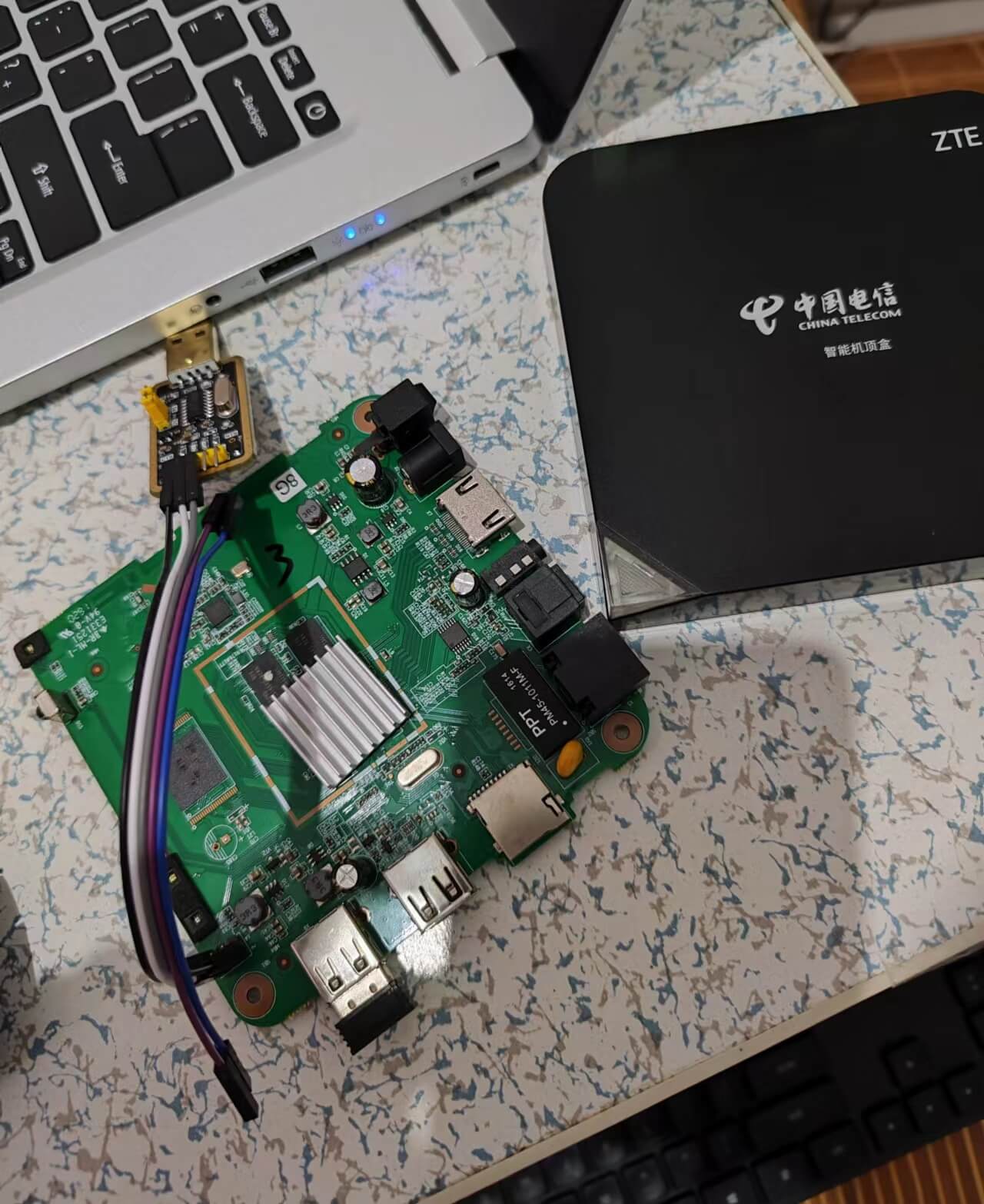 而且他本来也是一个带有安卓的机顶盒,正好的家里有一个屋子老电视放着也是放着,如果可以刷机的话,那配个机顶盒也是不错的哈,说查就查,一查懵逼研究半天,不过网上有很多高手,我们开始整就完了,我们准备好TTL线,还有刷机包,还有app,还有遥控器,HDMI线,PuTTY软件,之后我们开始拆机了(准备工作+拼多多买配件一周哈哈)