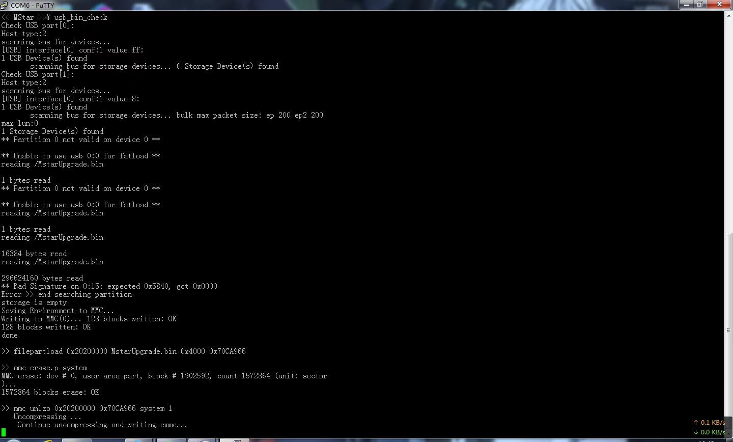 之后我们输入usb_bin_check回车后就会开始刷机(第一次我输入提示好像是警告意思,在输入一次就会正式刷机了)如下图
