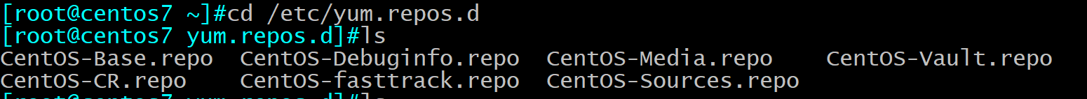 我这台虚拟机新安装的,所以打算更换阿里云的cd /etc/yum.repos.d目录如下