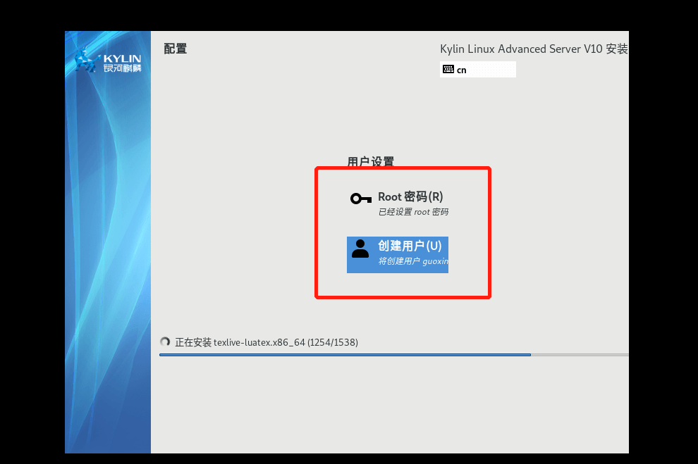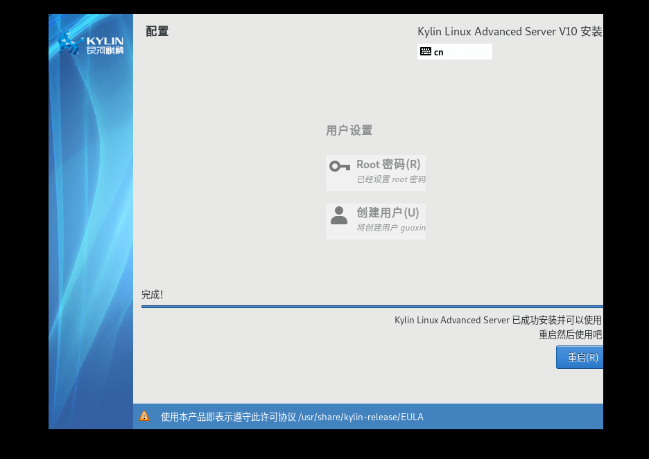 之后我们配置root用户与密码(麒麟设置密码必须得8位符合标准才行)
