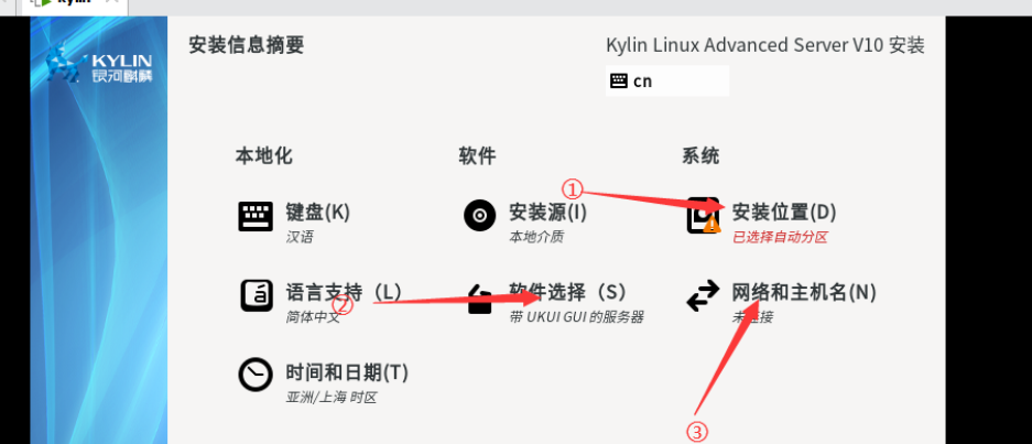 废话不多说,开装老规矩VM虚拟机走起,(我练习安装的麒麟版本是Kylin-Server-10-SP1-Release-Build04-20200711-x86_64)