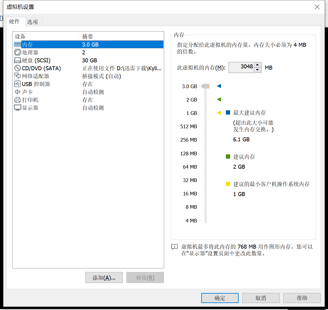 这里要配置基础设置,ISO文件也要在这里添加,内存还是要选3-4G