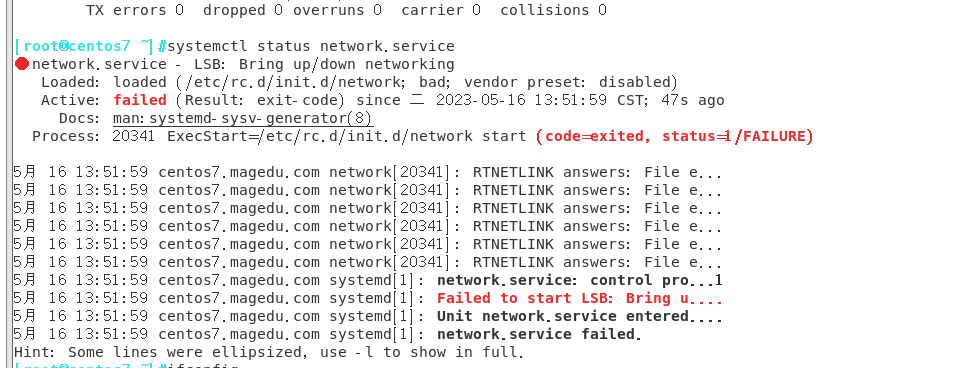 5月 16 18:58:37 centos7.magedu.com systemd[1]: Started LSB: Bring up/down networking.